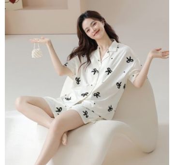 2-ка пижама рубашка/шорты Молочный Бантик Трикотаж пуговица