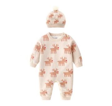 Ромпер Оленёнок Вязаный Коричневый Уни Пуговица 0388