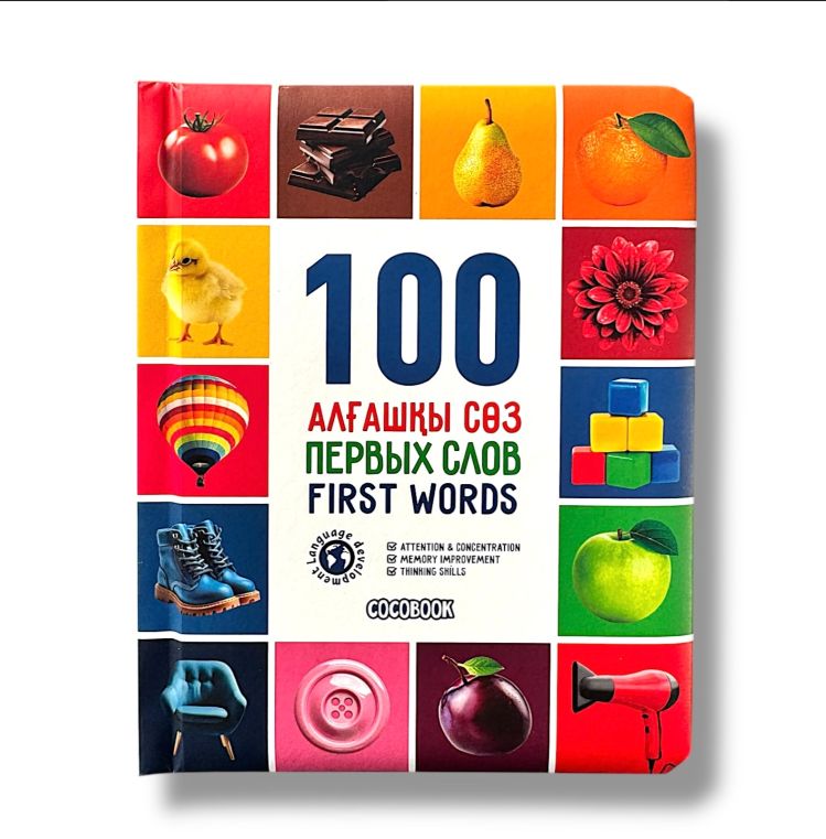 Читать все статьиДетская книга «100 первых слов» твердый переплет Cocobook (рус,казахск,англ)