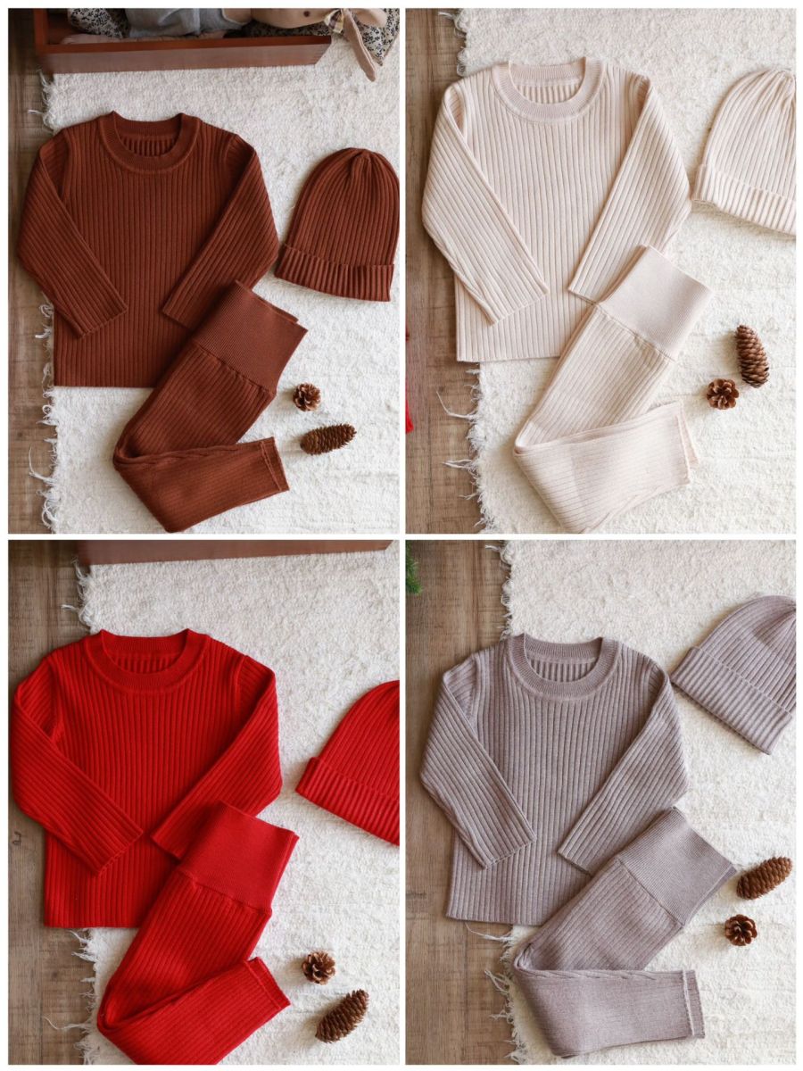 Читать все статьиДетский комплект 3в1 кофта леггинсы шапка Вязаный трикотаж 8070 #