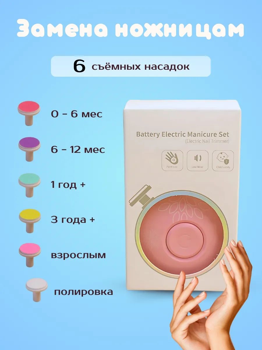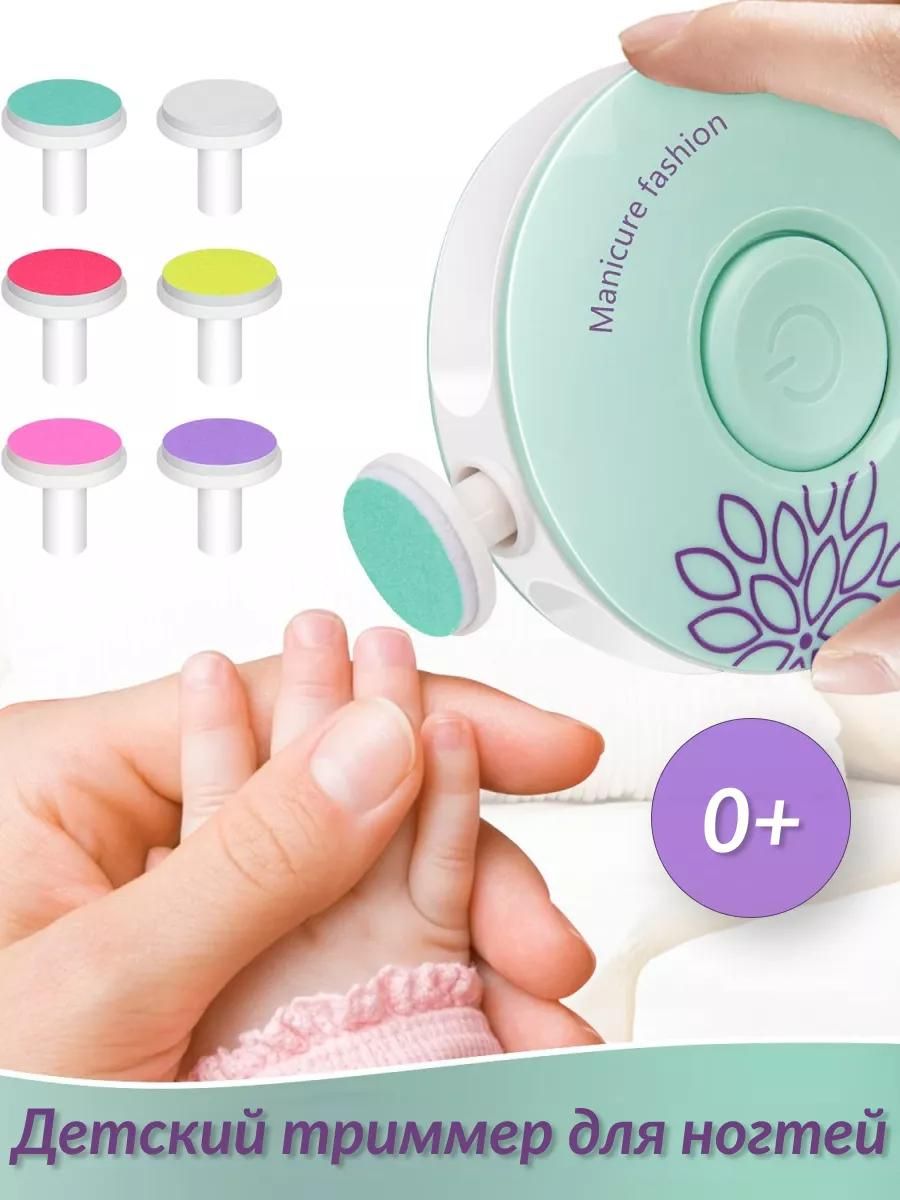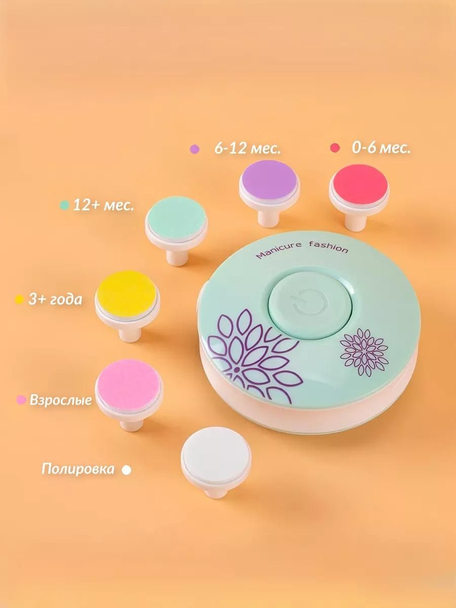 • Яркие насадки — малыш будет спокойно относиться к стрижке ногтей, принимая электропилочку как игру.