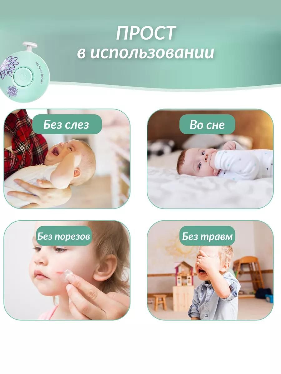 • Нежная и безопасная стрижка — насадки с мягкими покрытиями аккуратно подпилят ногти малыша, не доставляя ему дискомфорта. Риск травм исключен.