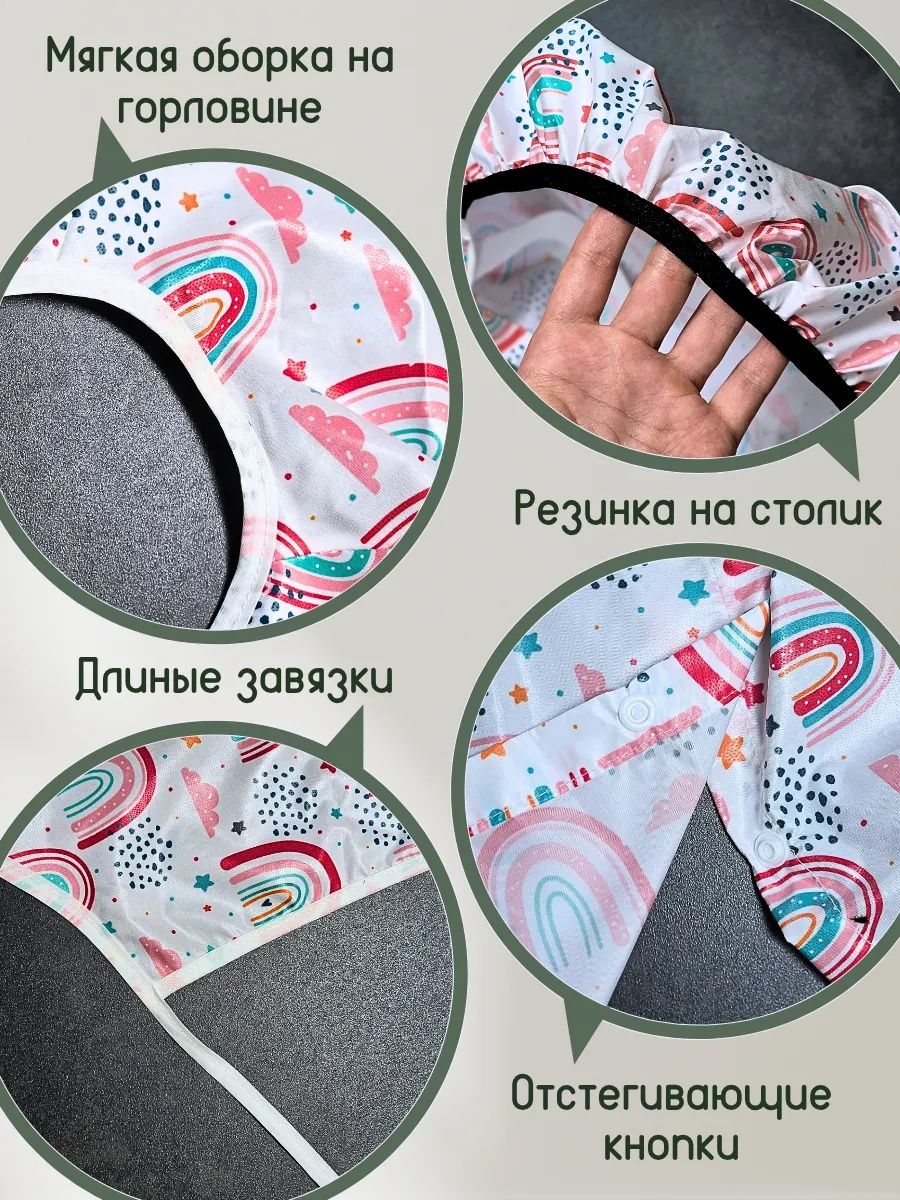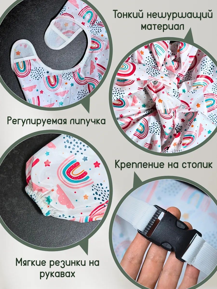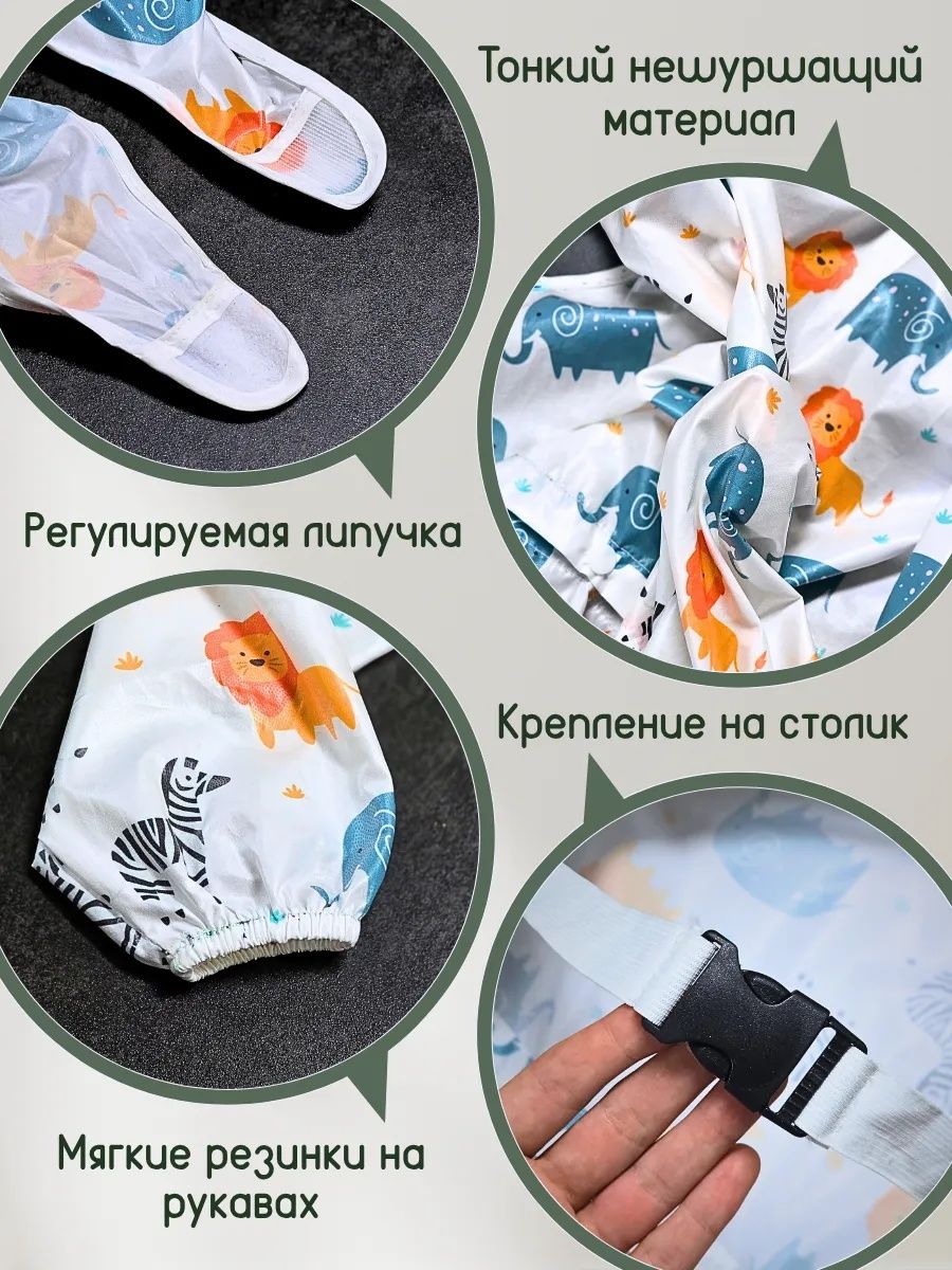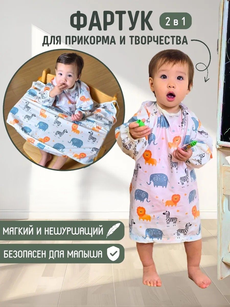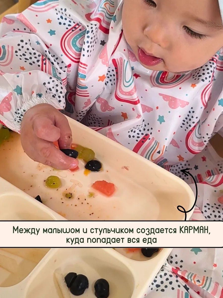 Нагрудник для кормления с рукавами — спасение для мам, уставших после каждого приема пищи полностью мыть малыша и менять одежду. Этот непромокаемый фартук надежно защищает одежду ребенка от пятен, каш, пюре и других загрязнений, позволяя малышу оставаться чистым даже во время активного прикорма. Благодаря удобному крою и длинным рукавам ребенок двигается свободно, а мама экономит время и силы — достаточно просто вытереть руки и рот крохи, и всё! Изготовлен из легкого, безопасного и быстро сохнущего материала, легко моется и подходит для ежедневного использования дома, в садике или на прогулке. Стильный дизайн делает процесс кормления приятным и веселым.