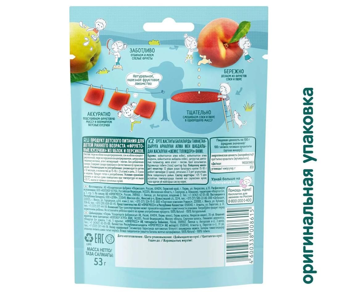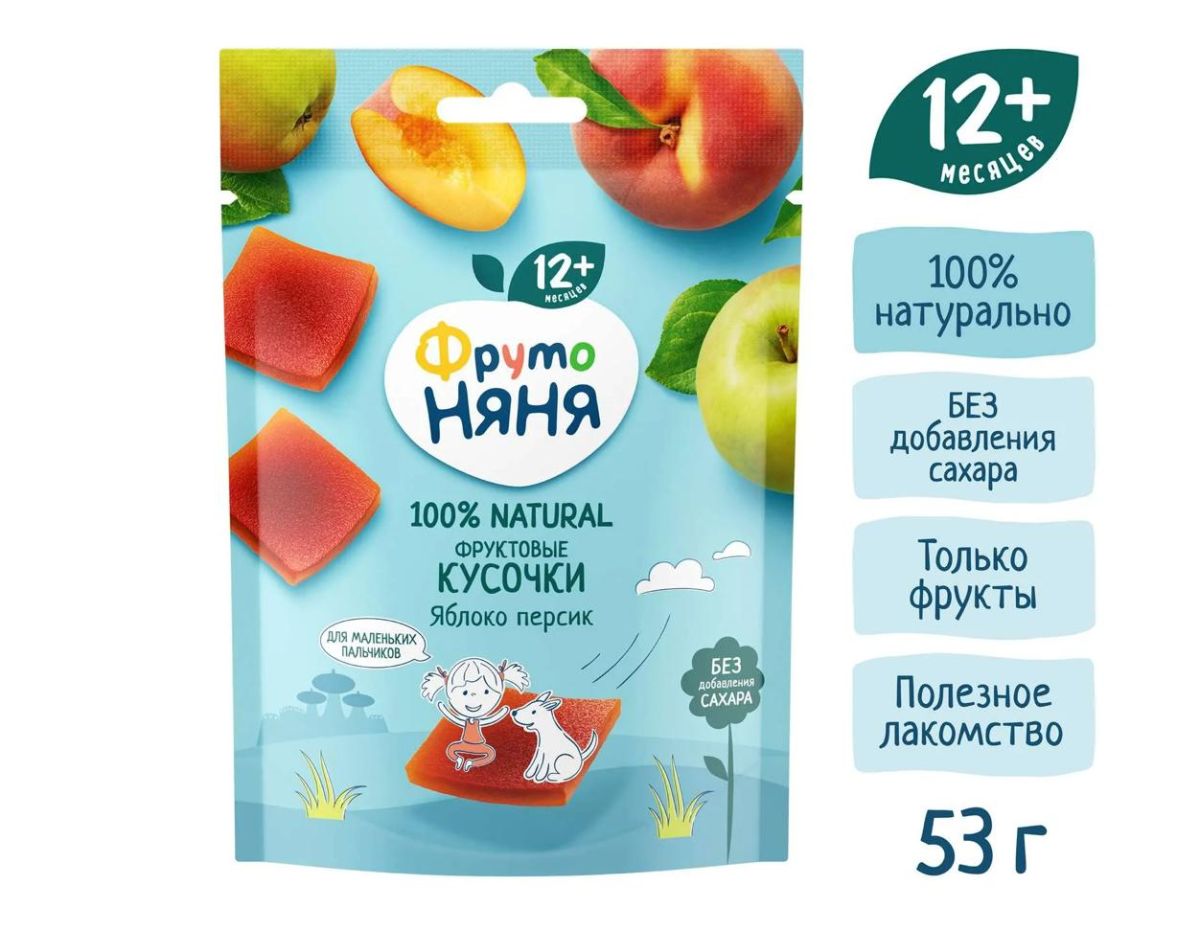 Читать все статьиФруктовые кусочки Фруто няня яблоко, персик 53г с 12 месяцев