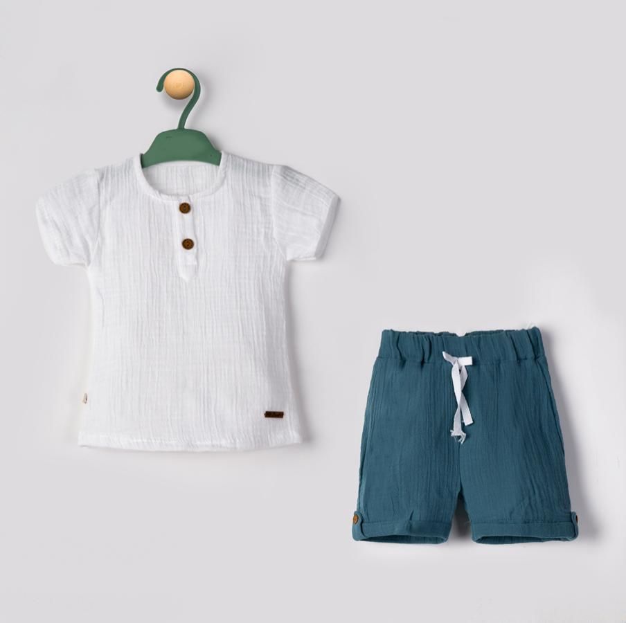 Читать все статьиФутболка с шортами Begi Муслин Синий Мал Пуговица 22406BS