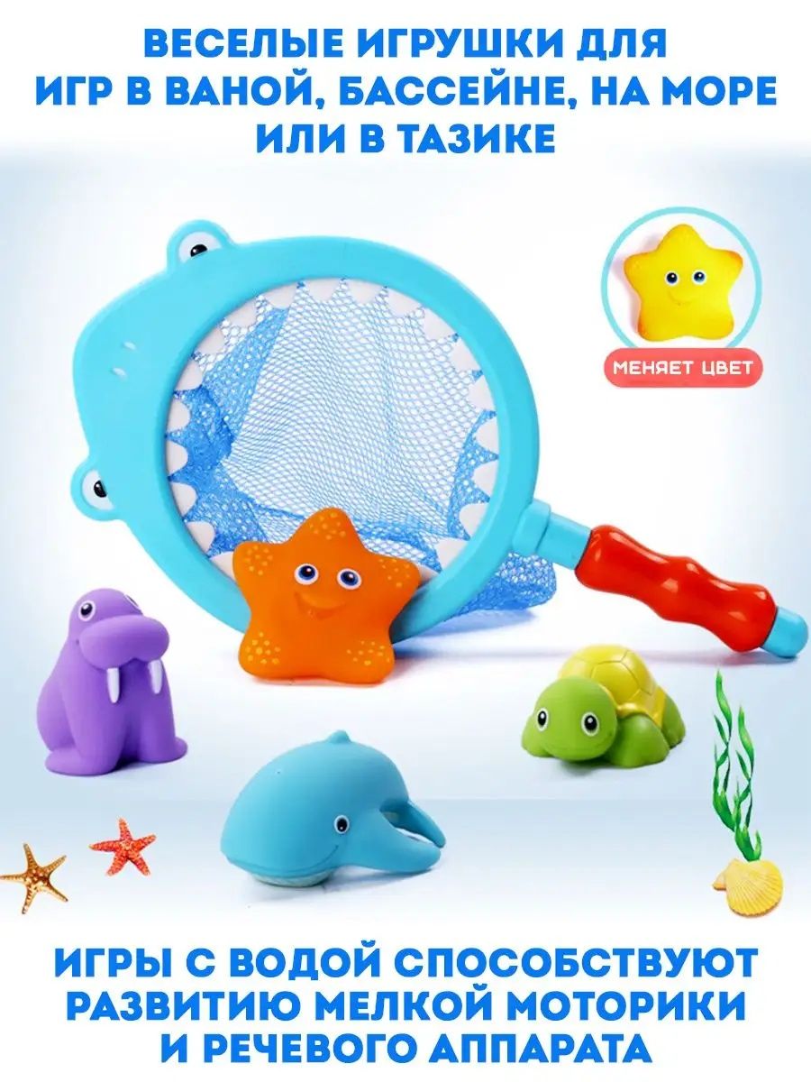 Интерактивная игрушка для купания «Весёлая рыбалка» превращает водные процедуры в увлекательную игру и помогает малышу с удовольствием принимать ванну. В набор входят сачок для ловли, морж и черепаха-пищалки, дельфин и морская звезда-брызгалки, причём звёздочка меняет цвет в тёплой воде выше 38°, что делает процесс ещё интереснее. Игры с водой развивают мелкую моторику, воображение, фантазию и стимулируют речь ребёнка. Все элементы изготовлены из безопасного пластика и мягкого винила без запаха, без острых краёв, и подходят детям от 1 года. Подарочный набор станет отличным сюрпризом на Новый год, День рождения или любой другой праздник и идеально подойдёт для купания дома и в детском саду.