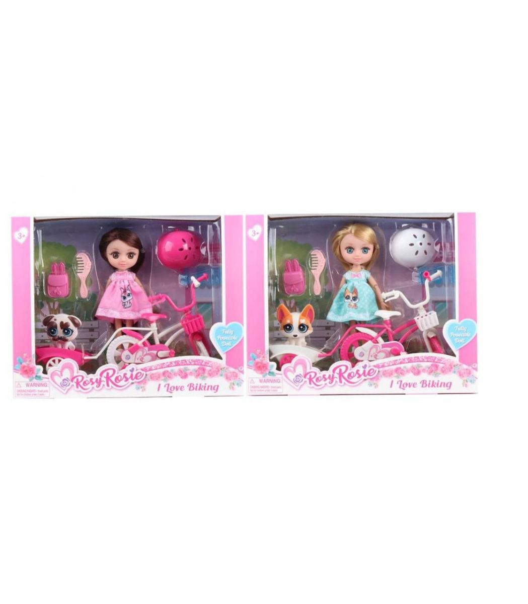 Читать все статьиИгрушка кукла с велосипедом и котенком RR016