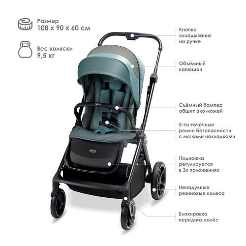 Стильная 4-х колесная коляска iLovi Elegance Mint разработана для детей c рождения. Современный дизайн в сочетании c компактным размером в собранном виде и большими колесами делают эту коляску идеальным решением для многих родителей.