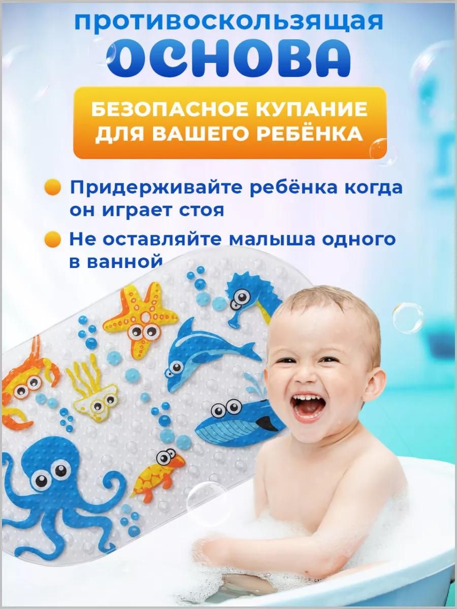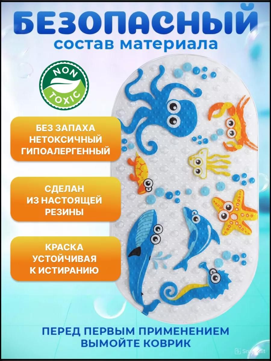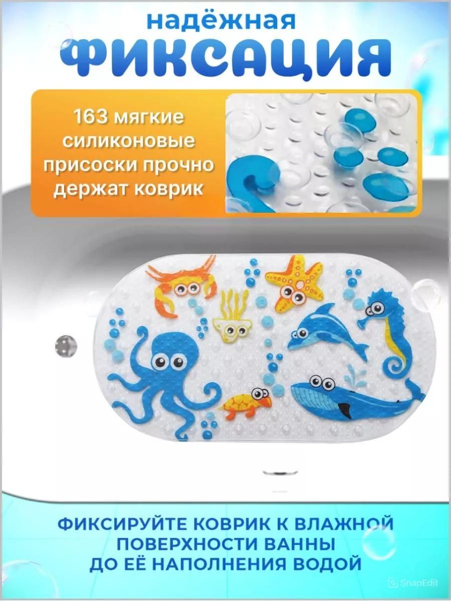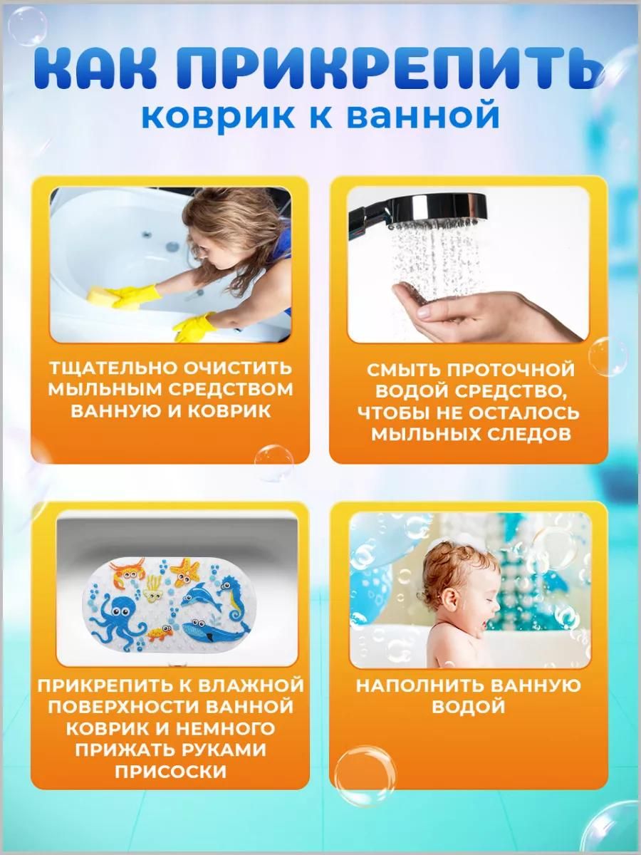Коврик для ванной противоскользящий детский на присосках