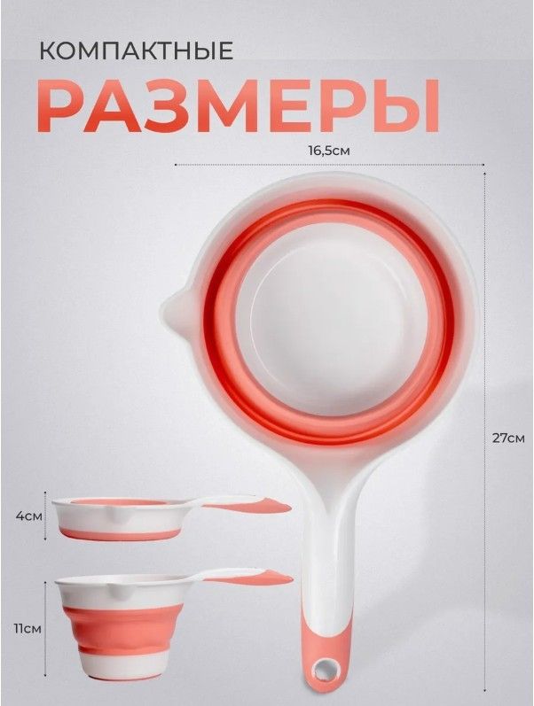Складной ковш объёмом 1л Для кухни и ванны, компактный и удобный