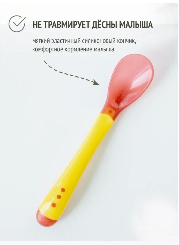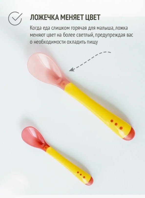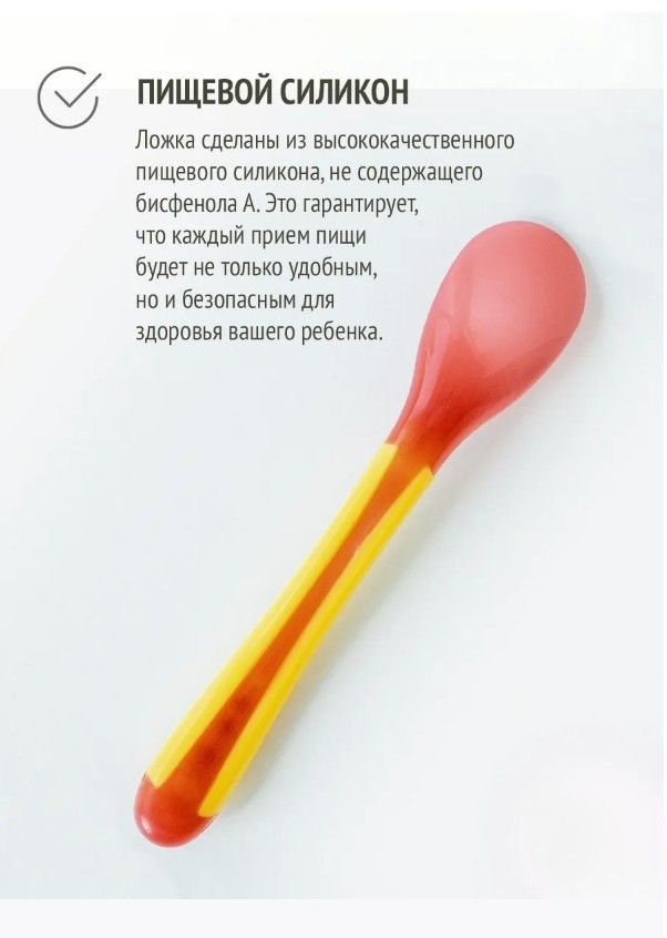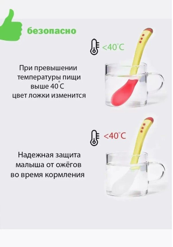 Когда еда слишком горячая для малыша, ложка меняет цвет на более светлый, предупреждая вас о необходимости охладить пищу. Это обеспечивает дополнительную безопасность и спокойствие родителей, уверенных в том, что их ребенок не обожжется горячей едой.