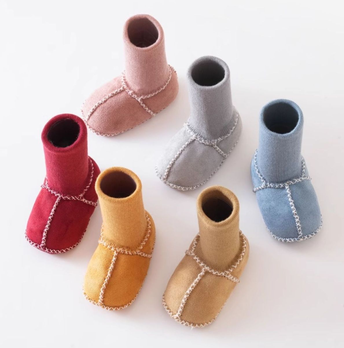 Детские пинетки-угги — стильная и тёплая обувь для малышей, которые нуждаются в уюте и защите от холода. Выполнены из мягкой замши с утеплителем из искусственного меха, который сохраняет тепло и дарит комфорт. Высокая трикотажная манжета надёжно фиксирует пинетки на ножке, предотвращает сползание и защищает от сквозняков. Эластичная конструкция облегчает процесс надевания и снятия, не причиняя малышу дискомфорта.