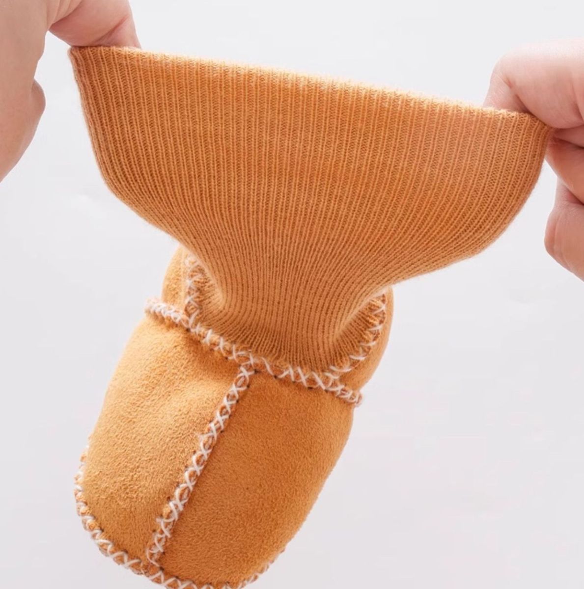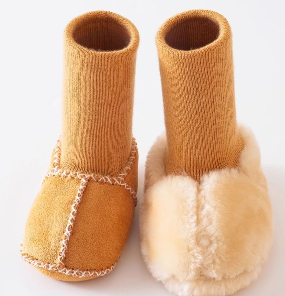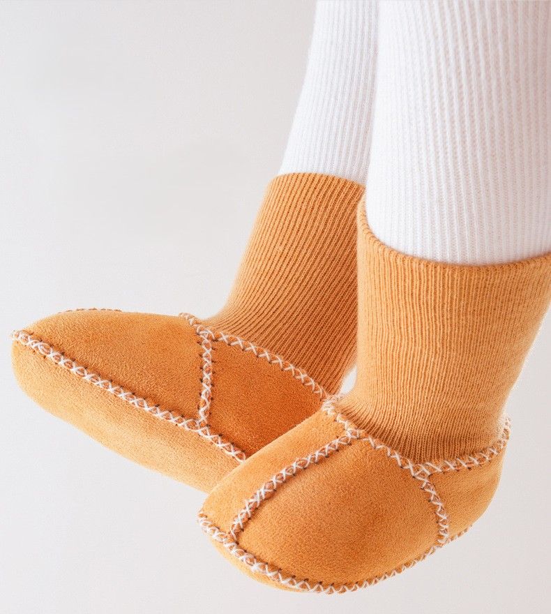 Декоративные крестовые швы добавляют оригинальности и прочности, а универсальный коричневый цвет подходит как мальчикам, так и девочкам. Отсутствие жёсткой подошвы позволяет ножкам двигаться свободно, что идеально для новорождённых и малышей до первых шагов. Подойдут для дома, прогулок или использования в коляске в холодное время года.