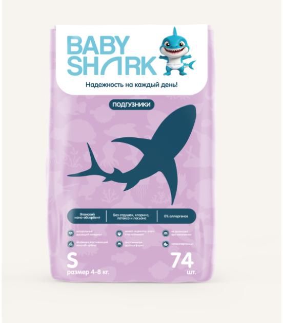 Читать все статьиПодгузники Baby shark S (4-8 кг) 74 шт