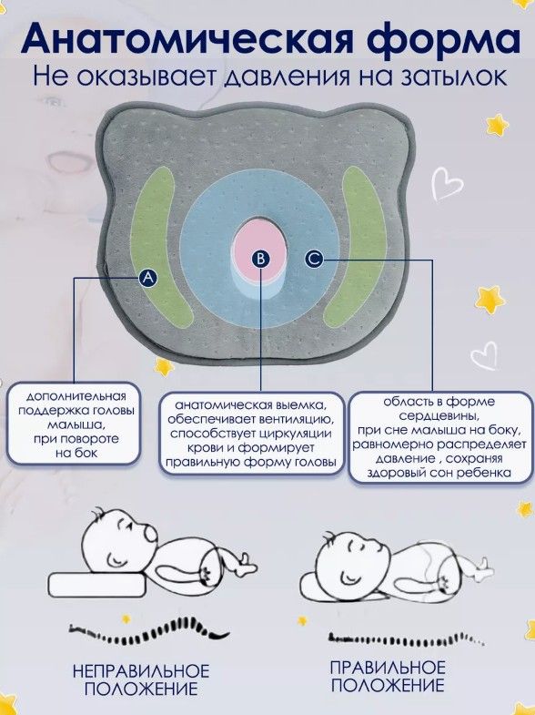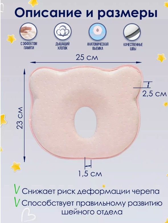 Анатомическая подушка-позиционер для новорождённых — идеальное решение для комфортного и безопасного сна вашего малыша. Специальная форма обеспечивает правильную поддержку головы и шеи, помогая предотвратить искривления позвоночника и синдром плоской головы. Подушка изготовлена из мягких и гипоаллергенных материалов, бережно воздействующих на чувствительную кожу малыша. Подходит для использования в кроватке, коляске или манеже. Легко очищается и сохраняет форму даже при длительном использовании. Отличный выбор для здорового сна и правильного физического развития ребёнка.