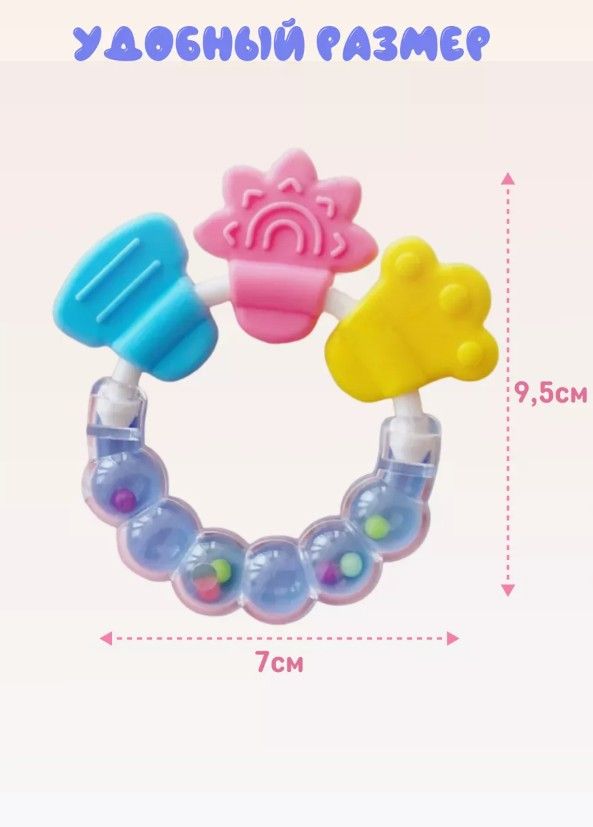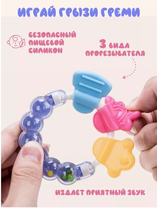 Развивающая игрушка-погремушка с прорезывателем — это идеальный подарок для новорожденных и малышей постарше. Благодаря легкому весу и удобной форме, игрушку комфортно держать даже в самой маленькой ручке.