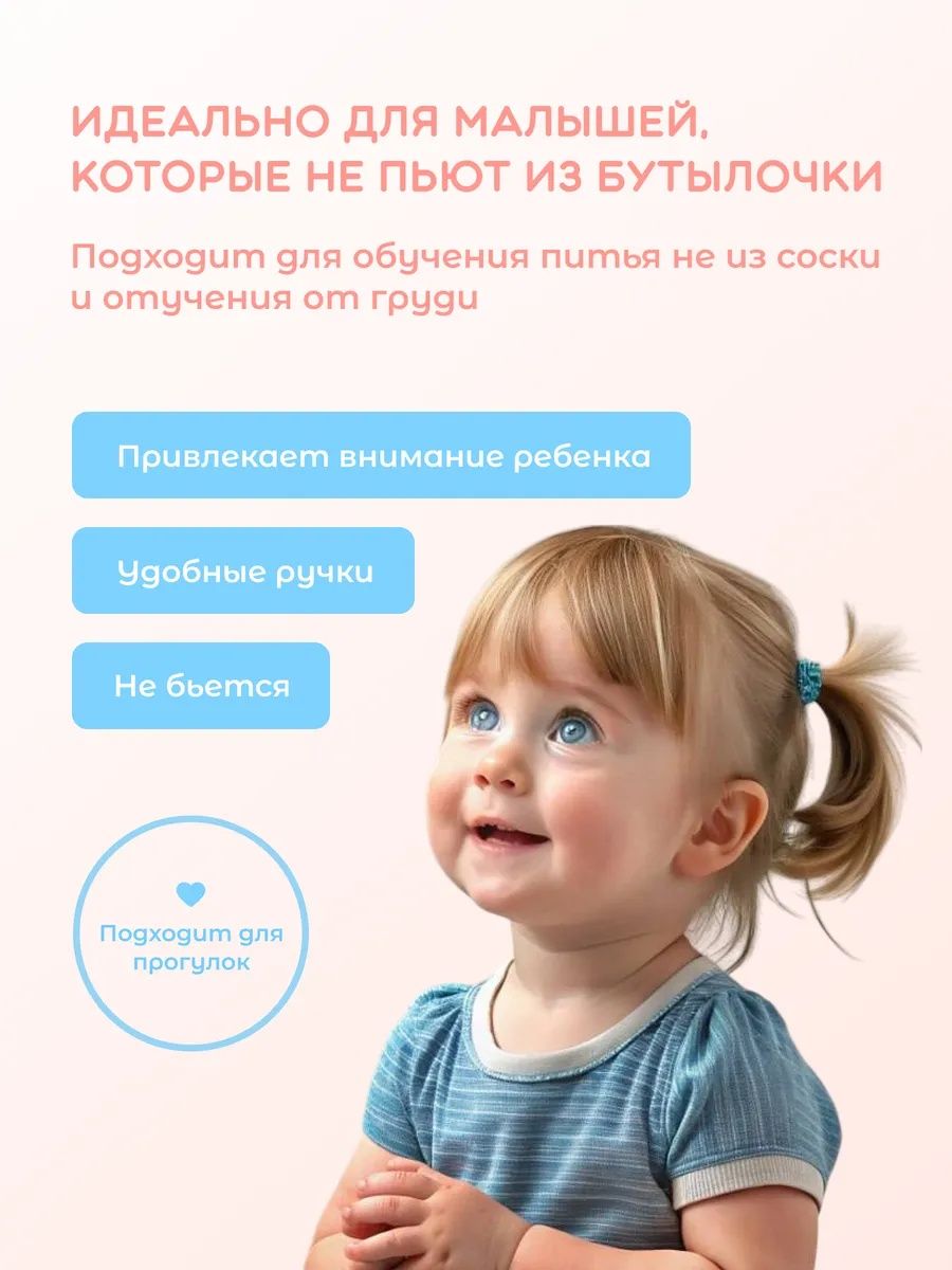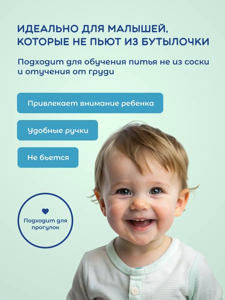 Поильник — стильный и практичный аксессуар для кормления малышей, который помогает научиться пить самостоятельно и развивает координацию движений. Он оснащен двухпозиционной крышкой для удобства в дороге, соской с грузиком для питья под любым наклоном и ручками для комфортного удержания маленькими ладошками. Поильник изготовлен из ударопрочного, экологически чистого материала без бисфенола А, безопасен для здоровья ребёнка и легко моется вручную или в посудомоечной машине. Идеален для воды, детских смесей, сока и других жидкостей, с удобной разметкой объема и яркими рисунками для малыша. При первом использовании достаточно сжать соску для появления прорезей. Другие цвета и размеры вы можете увидеть в нашем магазине Mi Mi.