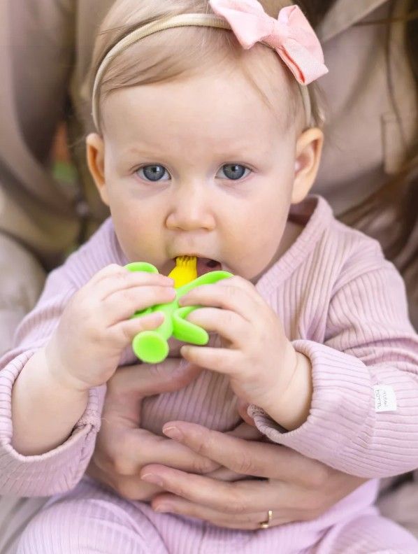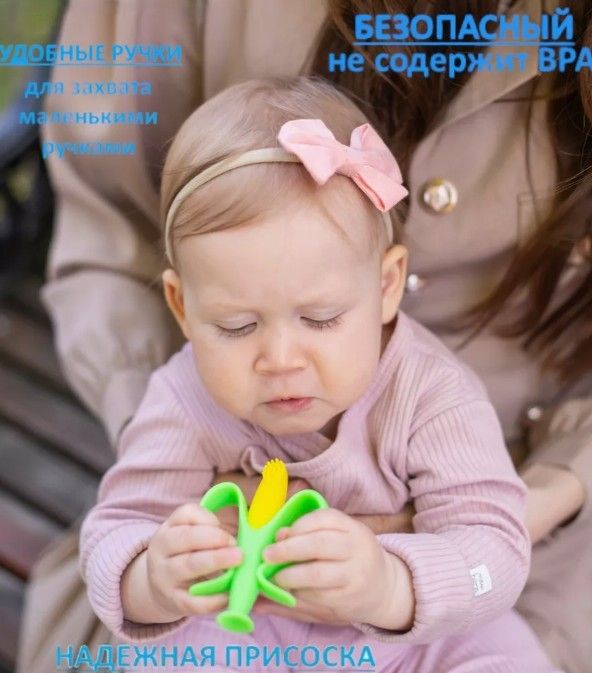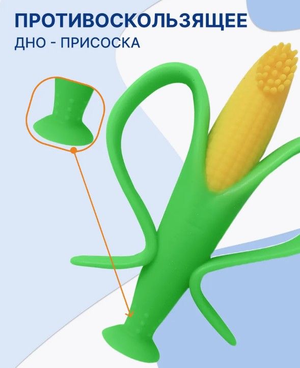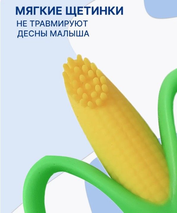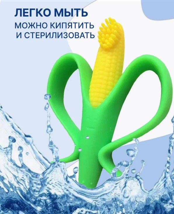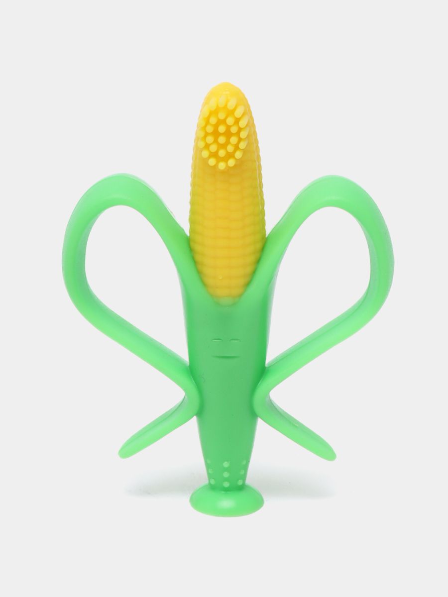 Силиконовый прорезыватель-щеточка в форме кукурузы — идеальный помощник при прорезывании зубов у малышей с первых месяцев жизни. Изготовлен из мягкого пищевого силикона, он безопасен, не вызывает аллергии и легко очищается. Удобные ручки способствуют развитию мелкой моторики, присоска обеспечивает гигиеничное хранение, а щетинки эффективно массируют дёсны, облегчая боль. Компактный и яркий, он привлекает внимание ребёнка и подходит как для дома, так и для прогулок. Можно охлаждать для усиления успокаивающего эффекта. Подходит и мальчикам, и девочкам.