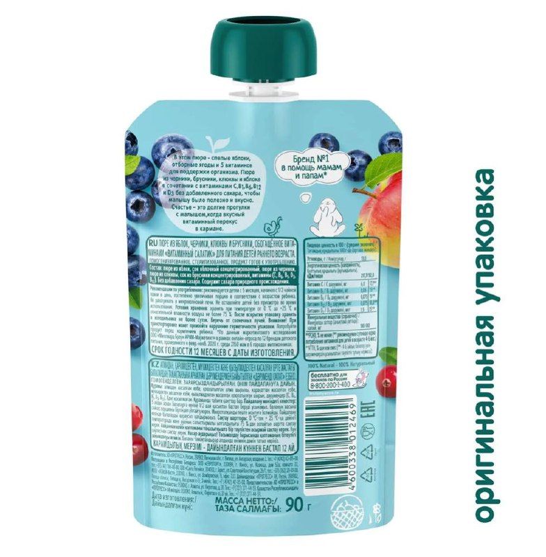Читать все статьиПюре Фруто няня Дой-пак фруктовый салатик с черникой 90г