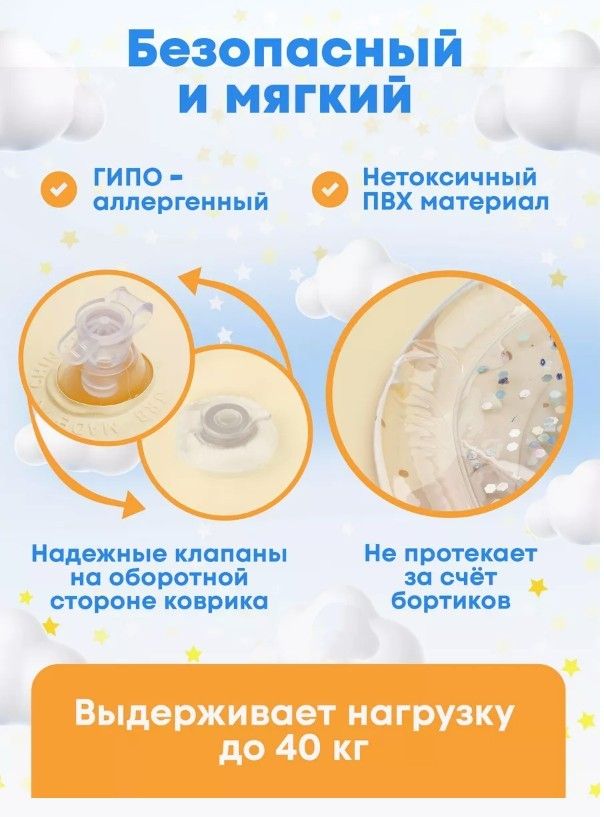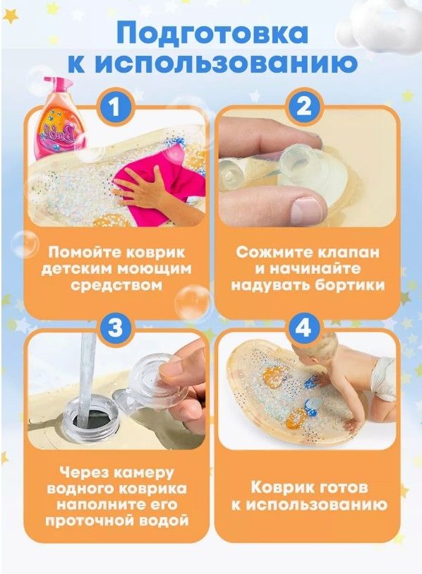 Развивающий коврик с водой для малышей — это увлекательная и полезная игрушка для первых месяцев жизни. Внутри прозрачной водной подушки плавают яркие фигурки, которые стимулируют зрение, моторику и внимание ребёнка. Мягкий материал безопасен для кожи, а водная поверхность отлично развивает мышцы шеи и спины во время лежания на животе. Просто налейте воду в центральную часть и воздух в края — коврик готов к игре! Легко складывается и подходит для использования дома и в поездках. Доступны разные цвета и товары для мамы и малыша — смотрите в нашем магазине