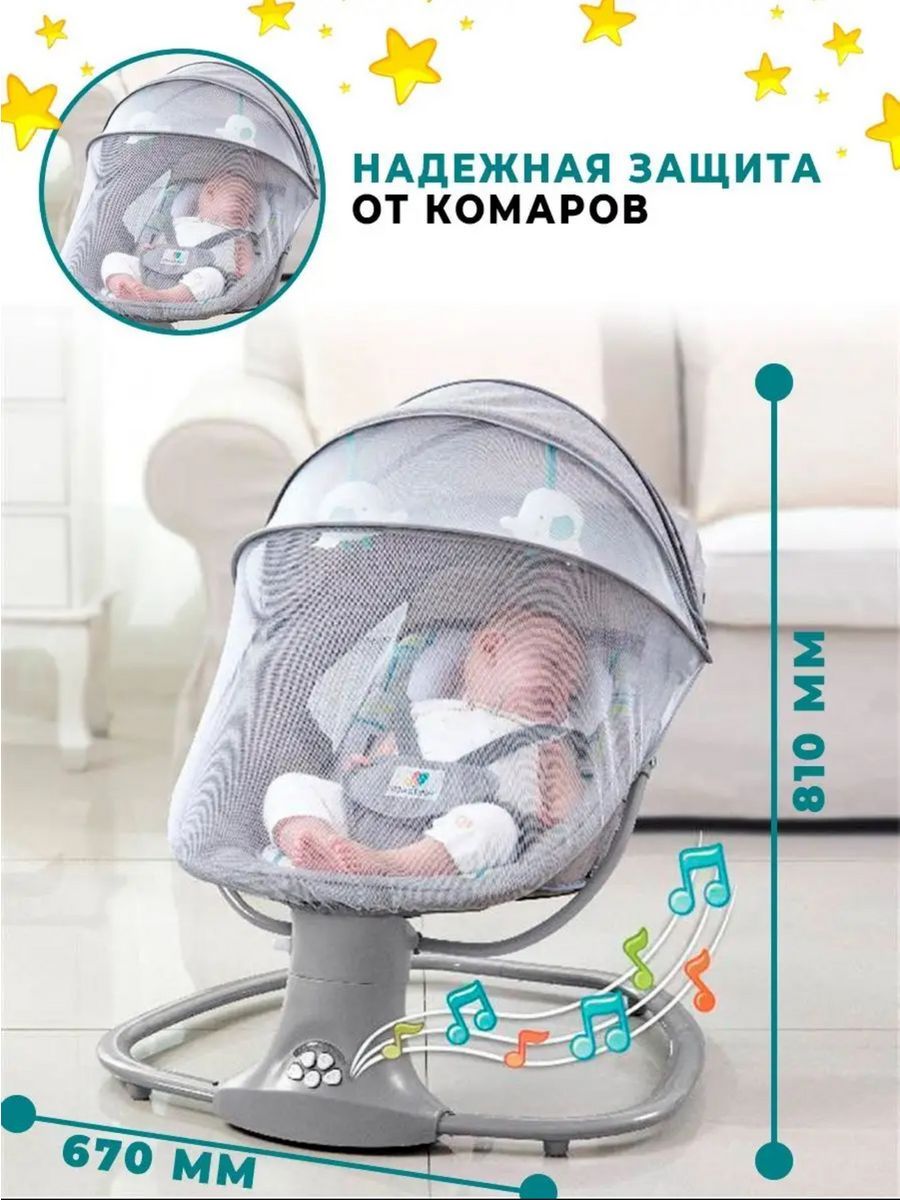 Электрокачели для новорожденных Mastela - это современное устройство, объединяющее в себе сразу несколько функций. Уютное место для сна и отдыха ребенка, позволяющее занять кроху и освободить руки родителей. Благодаря электронным качелям происходит эффективное укрепление мышечной системы и вестибулярного аппарата малыша. Качели помогают лучше освоить маленькому человечку окружающее его пространство. Подходит электрокачели для новорожденных до года и до 3 лет. Кресло можно использовать до 18кг (примерно 4 года), ребенок может в нем сидеть. Имеет анатомическую форму, что очень важно для правильного развития позвоночника. Детская качель изготовлена из пластика, прочных металлических креплений и приятного текстиля который напоминает плетение льна (псевдо-лен). В комплекте дополнительный матрасик с мягкой подушечкой для новорожденного. Сама ткань натягивается на шезлонг плотно и не сползает. Пятиточечные ремни безопасности, прочные, имеют 2 уровня высоты. Мягкий матрасик и подушечка-ограничитель съемные.