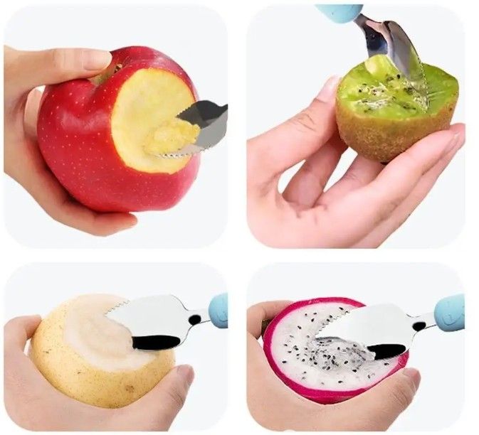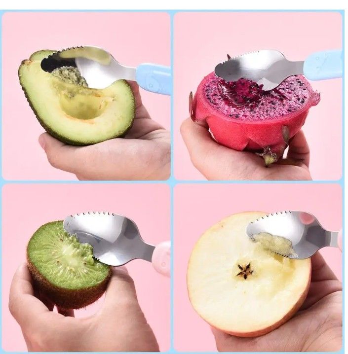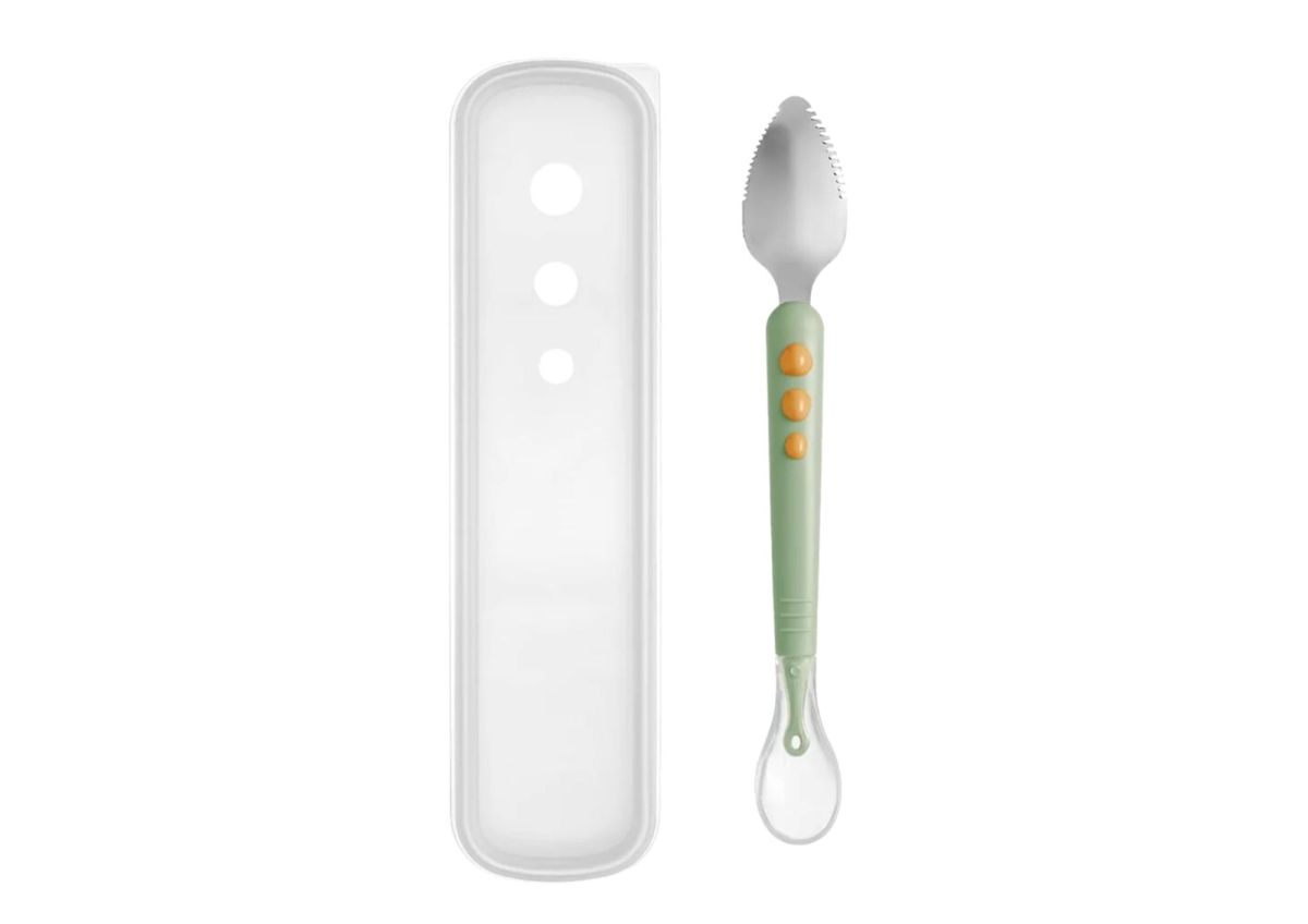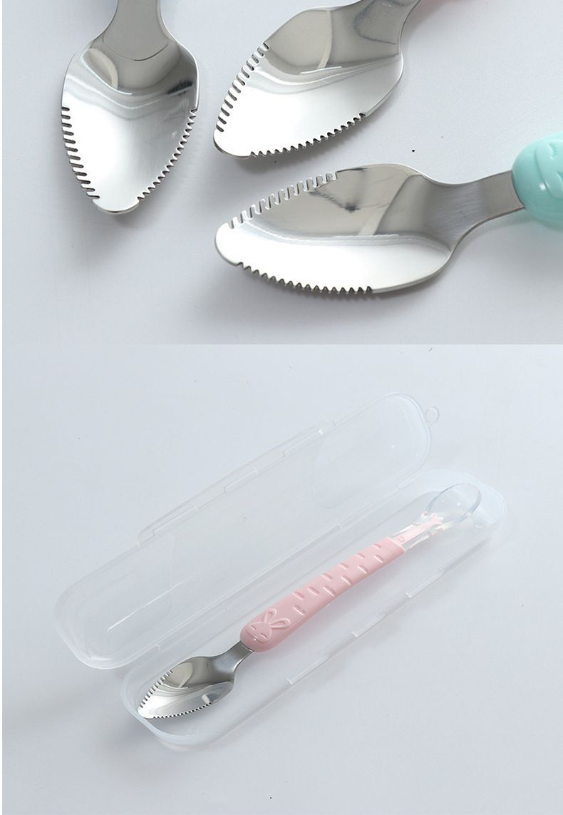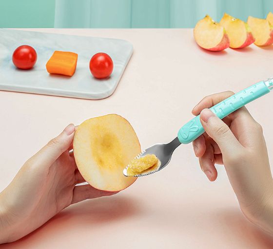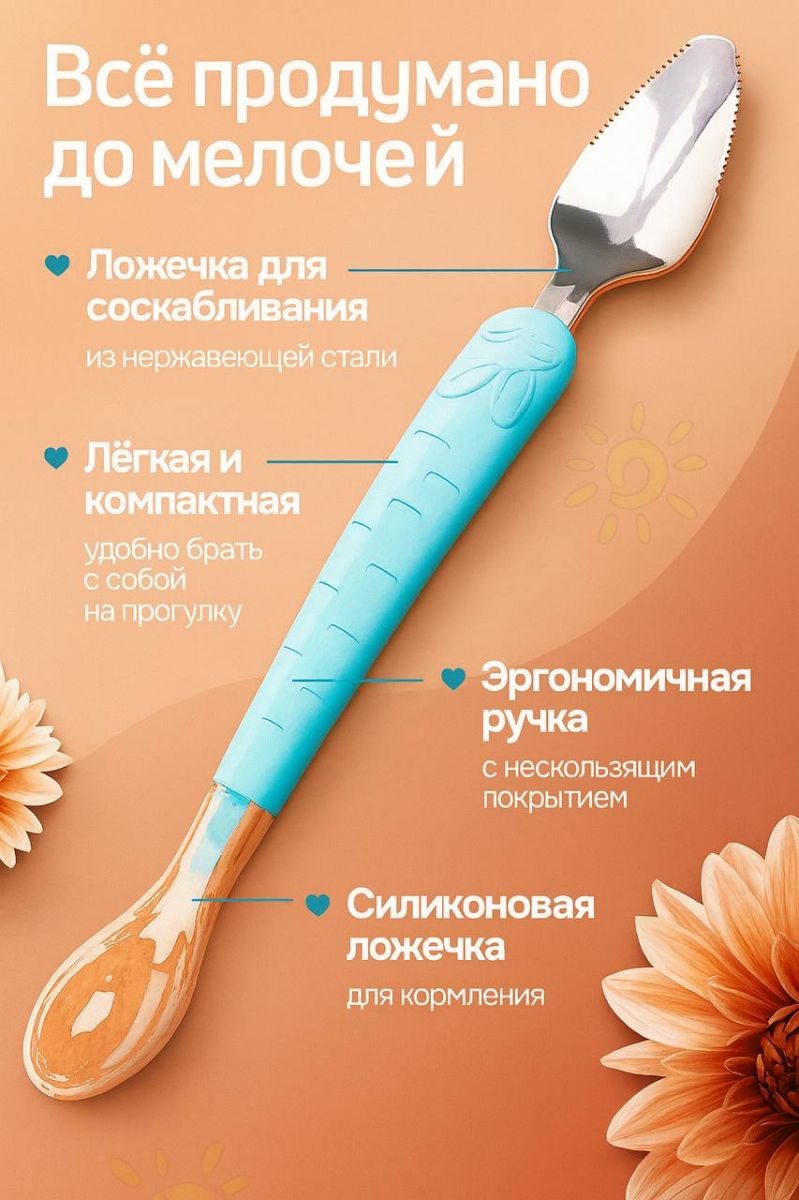 Детская ложка-скребок — это универсальный аксессуар для кормления малышей, созданный для удобства родителей и безопасности ребёнка. Изготовленная из высококачественной нержавеющей стали и мягкого силикона, она не ржавеет, не тускнеет и абсолютно безопасна для детских зубов и дёсен. Двухсторонняя конструкция делает её незаменимой: зубчатая сторона отлично подходит для измельчения пищи и приготовления пюре, а гладкая силиконовая сторона — для бережного кормления малыша. Удобная длинная ручка (21,8 см) облегчает использование, а материалы без BPA позволяют мыть ложку в посудомоечной машине. Идеальный выбор для заботливых родителей!