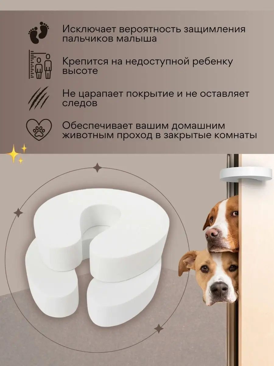 Дверной стоппер-ограничитель — это надёжная защита для малышей от прищемления пальчиков. Мягкая накладка предотвращает резкое захлопывание межкомнатных дверей, дверок шкафов и раздвижных конструкций, обеспечивая безопасную среду дома. Стоппер легко фиксируется на боковой части двери без крепежей, не царапает поверхность и не оставляет следов. Устанавливается на высоте, недоступной ребёнку. Подходит не только для защиты детей, но и для домов с домашними животными, чтобы дверь всегда оставалась приоткрытой. Прочный, удобный, универсальный аксессуар для безопасности малышей каждый день.