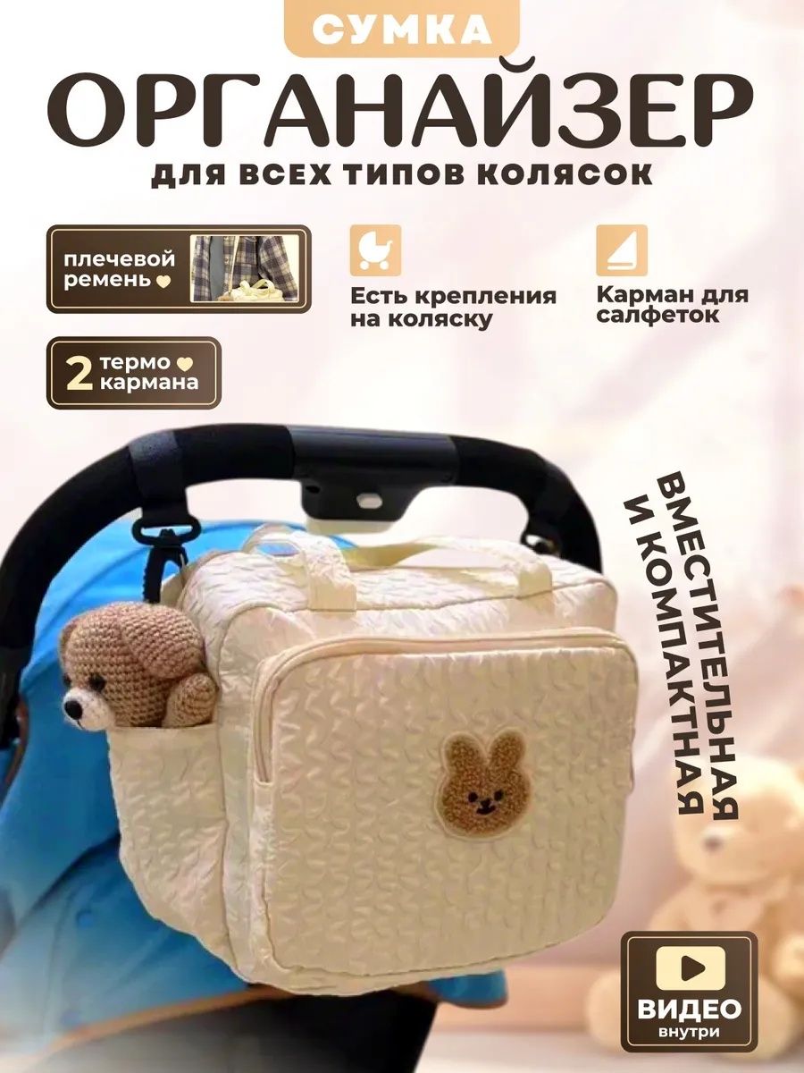 Универсальная сумка-органайзер для коляски сделает каждую прогулку с малышом удобнее: продуманная конструкция с множеством карманов позволяет разместить подгузники, бутылочки, салфетки, игрушки и все необходимые мелочи, а надежные крючки-липучки обеспечивают быстрое и крепкое крепление на любую коляску — от прогулочной до люльки или санок. Легко чистящийся прочный материал, регулируемый ремень и стильная белая расцветка делают эту модель идеальным выбором для мам, которые ценят порядок, функциональность и красивый внешний вид. Другие модели и расцветки сумок вы можете посмотреть в магазине Mi Mi.