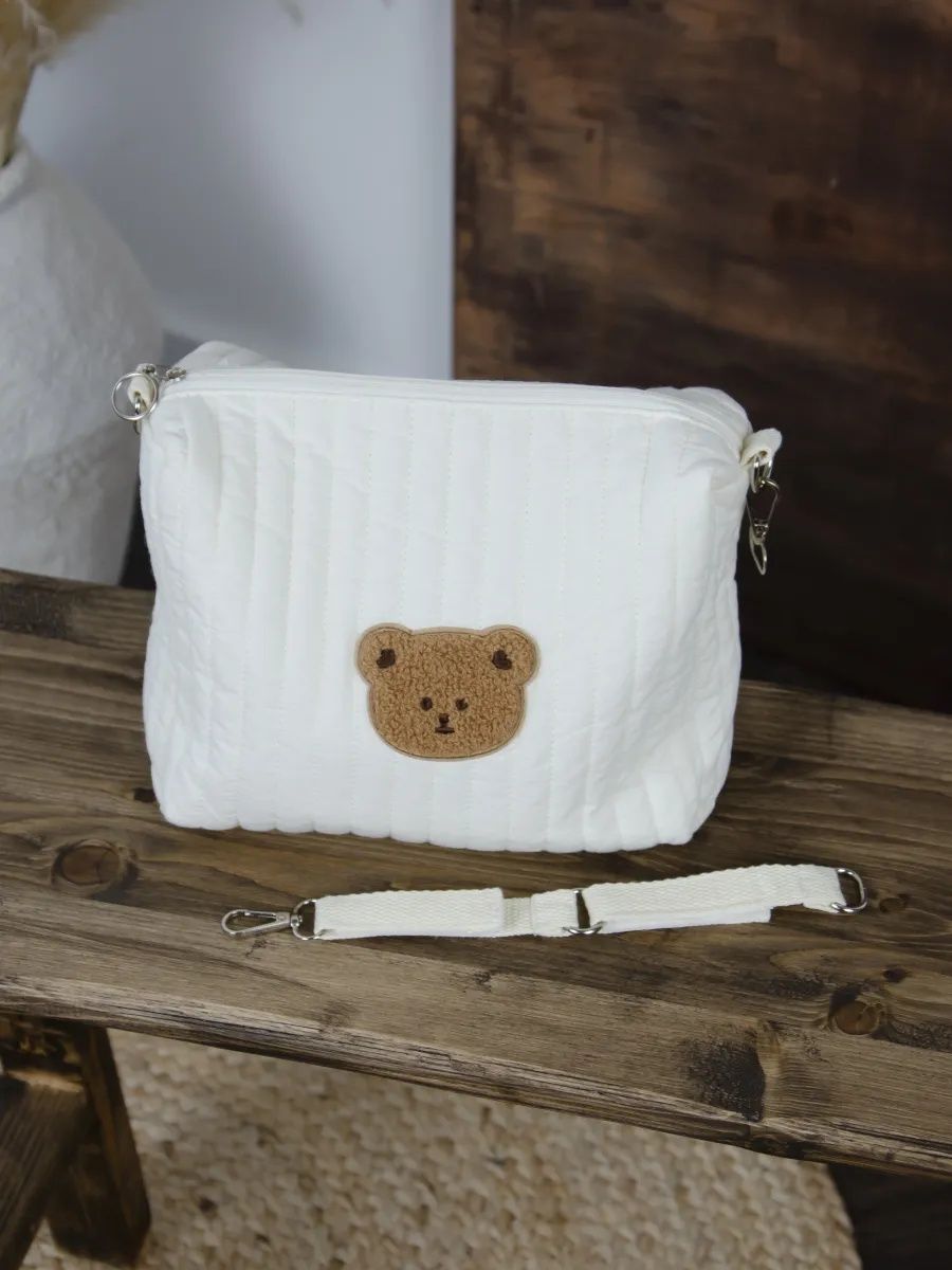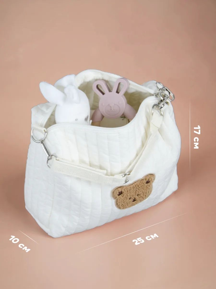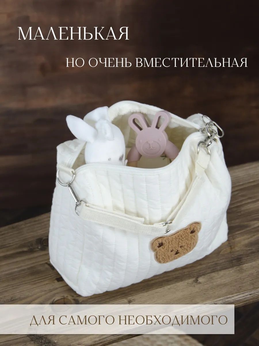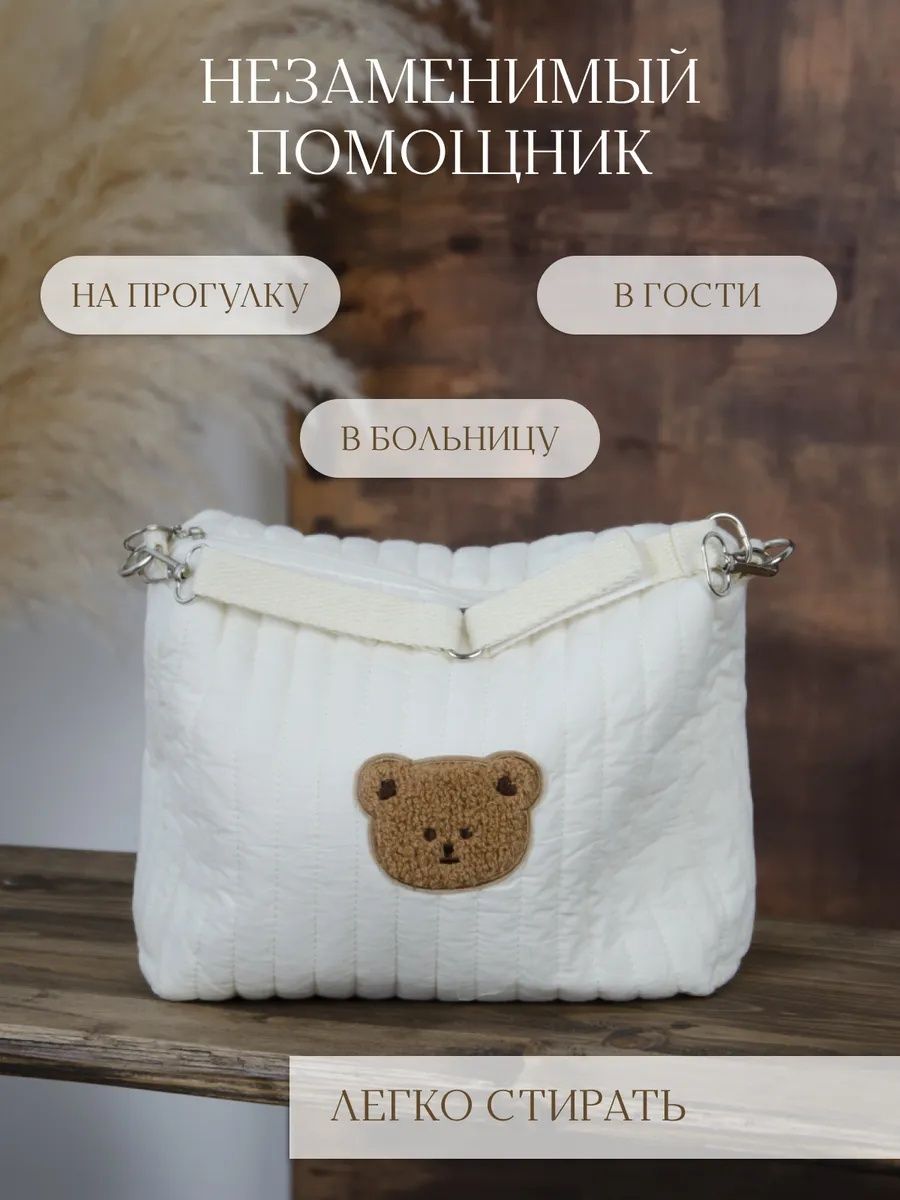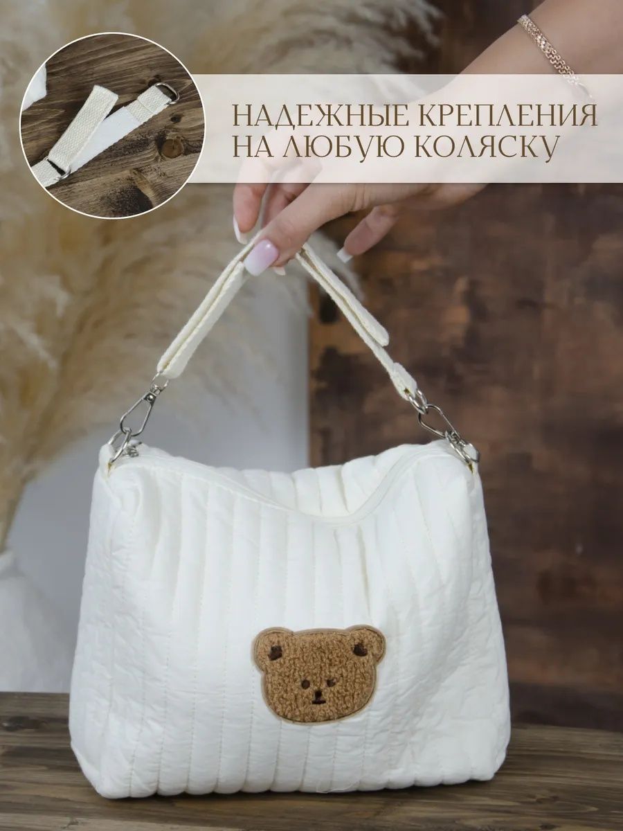 Представляем вам стильную и практичную сумку-органайзер, созданную специально для заботливых мам! Эта сумка станет незаменимым помощником во время прогулок с малышом, походов в гости или визитов в больницу. Вместительный основной отсек с удобной застежкой-молнией вместит все необходимое для вашего крохи: памперсы, бутылочку, сменную одежду и любимые игрушки. Внутренний карман для мобильного телефона позволит вам всегда оставаться на связи. Сумка выполнена из качественного хлопка с узорно-рельефной фактурой и украшена милой вышивкой в виде мишки, что придает ей особый шарм. Благодаря длинному регулируемому ремню, вы можете носить сумку на плече, на руке или крепить ее на коляску. Сумка-органайзер – это идеальное сочетание стиля, удобства и функциональности, которое непременно оценит любая мама!