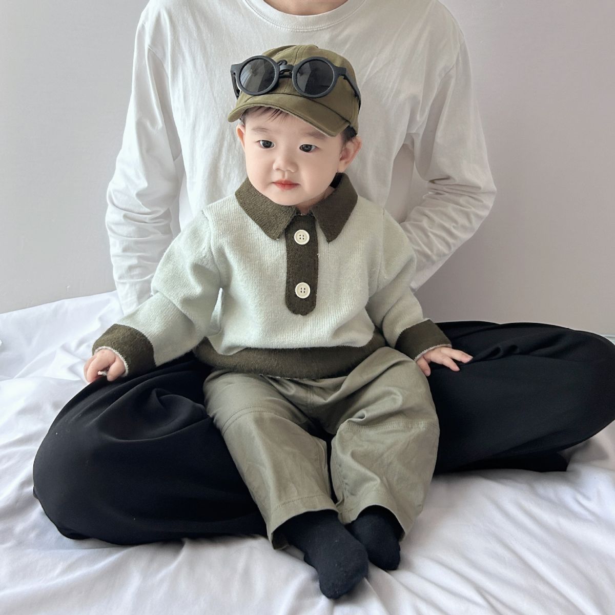 Свитер Вязаный Серый/зеленый Мал Пуговица Т24Q24