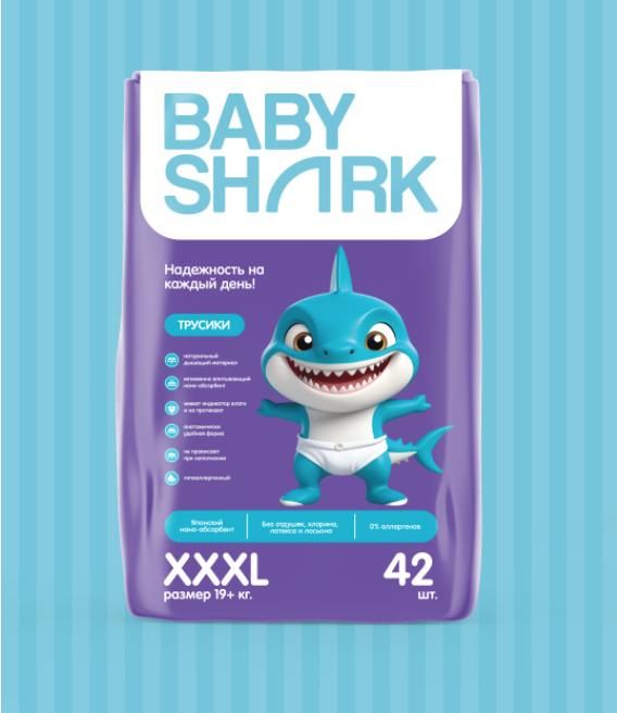 Читать все статьиТрусики Baby shark ХХХL (19+ кг) 42 шт