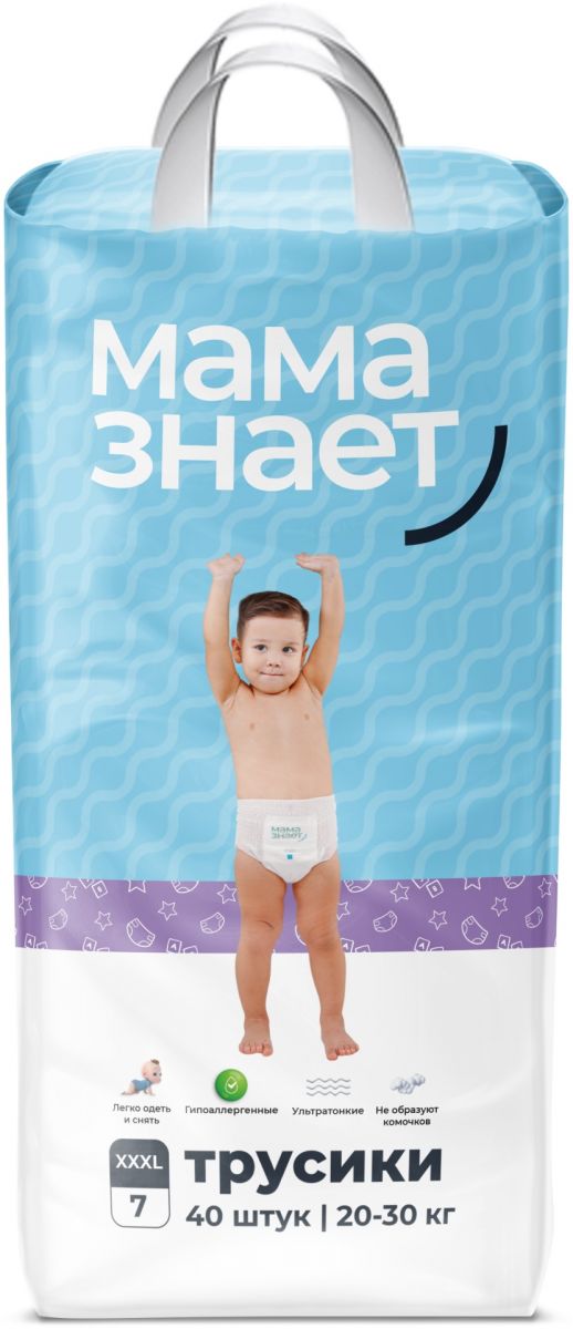 Читать все статьиТрусики Мама знает 7-XXXL 20-30кг (40шт)