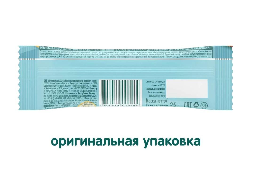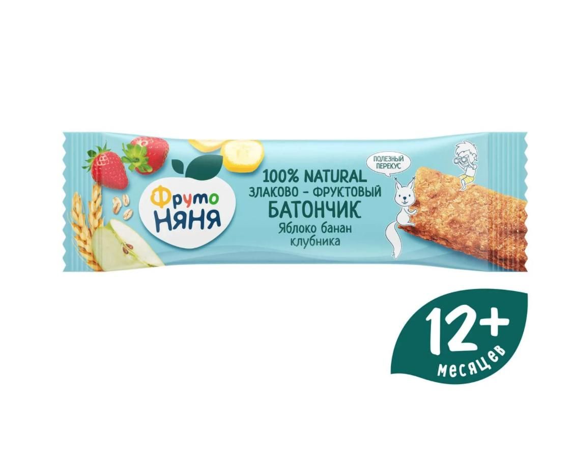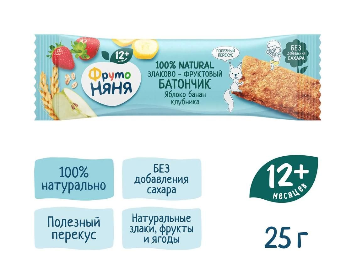 Читать все статьиЗлаковый батончик Фруто Няня яблоко, банан, клубника 25 гр
